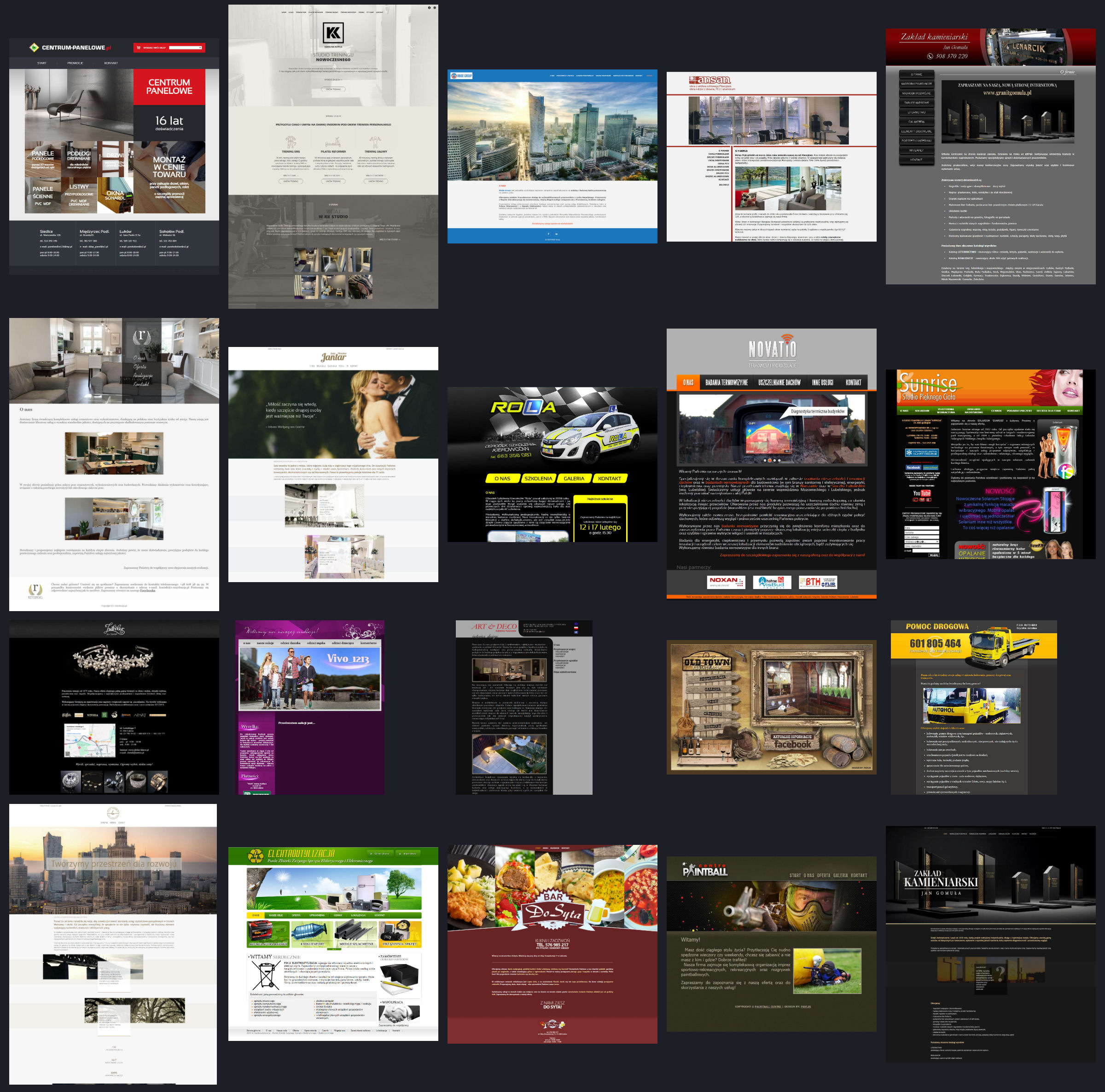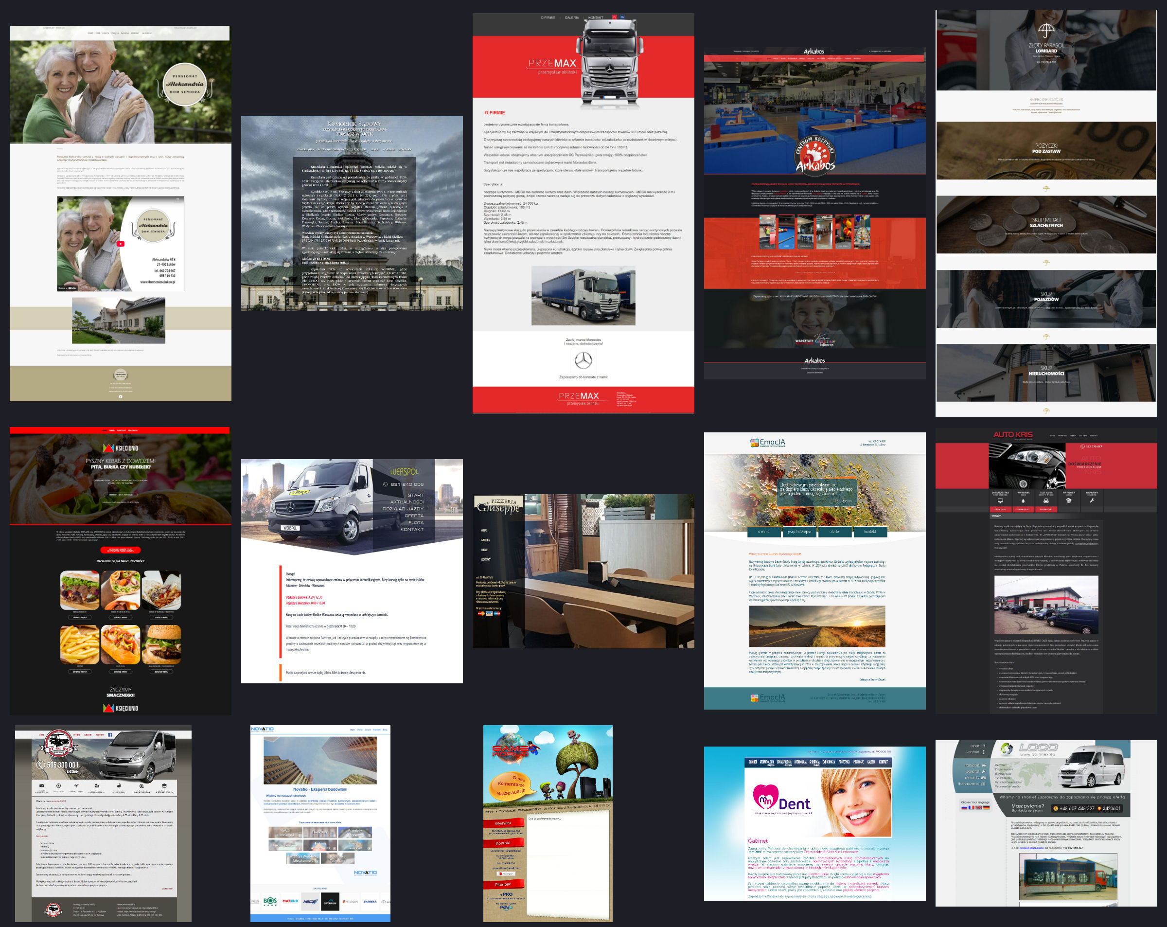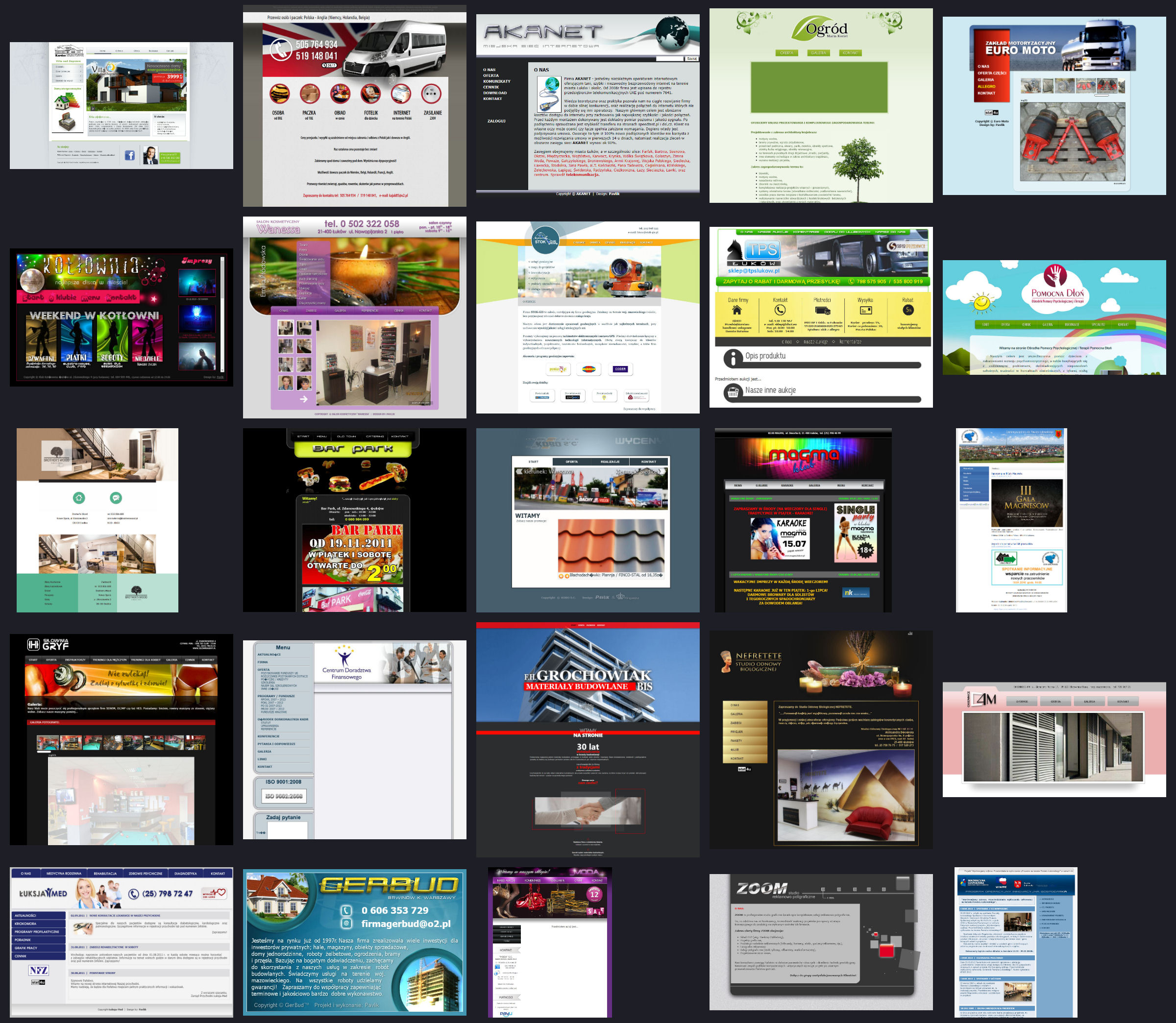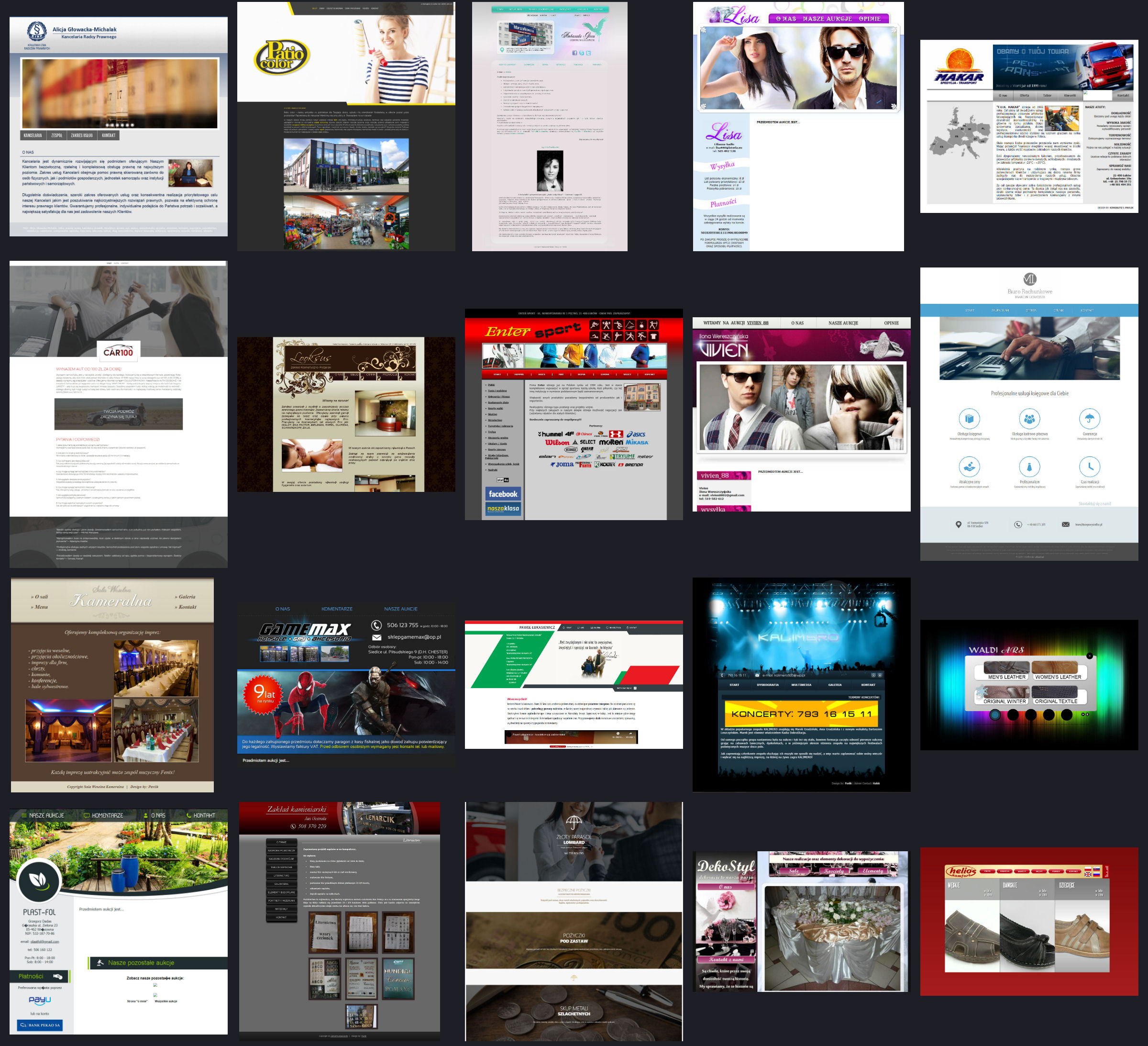 Projekty moich stron i wizytówek internetowych czy też szablonów allegro. Nowe, stare a nawet te, zabytkowe, w tym flashowe, oraz te "odkopane" jeszcze sprzed mobilnej ery. To tylko garstka projektów, ułożona losowo. Mnóstwo przedsiębiorców oraz wiele branż.